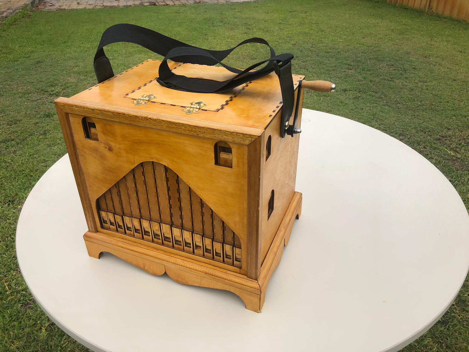 Note the handle for left-handed buskers