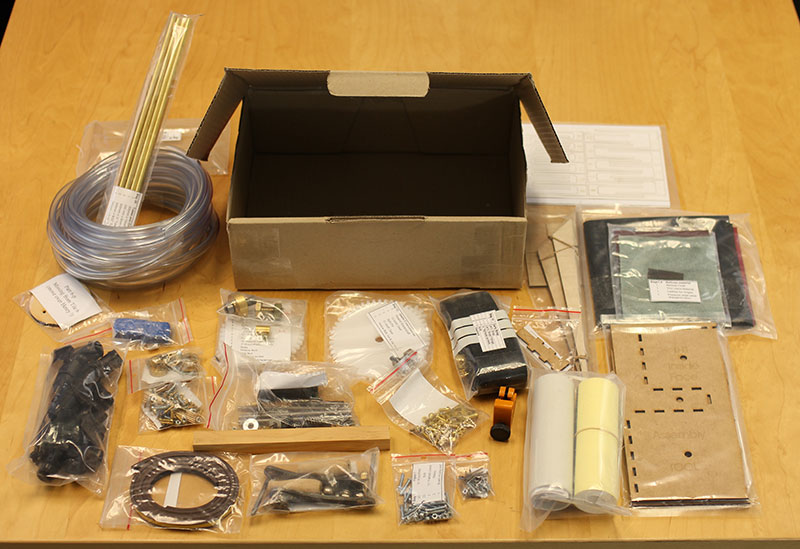 The contents of the parts box within the kit